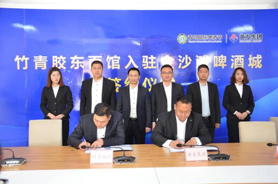 4月10日, 金沙灘啤酒城舉行竹青膠東摔面入駐簽約儀式,300年歷史傳承的特色美食、山東省非物質文化遺產--膠東摔面正式簽約入駐青島國際啤酒節,讓海內外游客暢飲美酒的同時,品嘗舌尖美食、探尋舌尖魅力。
