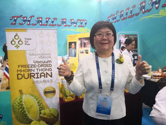 泰王國駐青島總領事館總領事王玉君親自到東亞商品展現場,推廣泰國的美食文化。她說“主辦方在這里辦了一場大型的商品展,我們覺得非常好。這是一個很好的經貿文化合作交流平臺,能讓更多的中國朋友了解泰國,讓更多的泰國商品走進中國。”