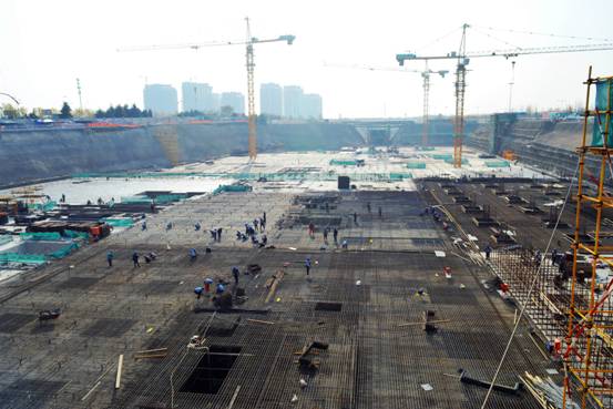 日前,由黃發(fā)集團(tuán)負(fù)責(zé)的新區(qū)市民中心項(xiàng)目快速推進(jìn)。項(xiàng)目于9月5日全面開工建設(shè),施工現(xiàn)場(chǎng)塔吊林立、機(jī)械轟鳴,呈現(xiàn)出一派如火如荼的施工場(chǎng)景。截至目前,已完成深基坑開挖及邊坡支護(hù)施工,累計(jì)開挖及外運(yùn)土石方約50萬(wàn)方;完成5部塔吊樹立;完成基礎(chǔ)墊層、抗浮錨桿施工;正在進(jìn)行底板防水、防水保護(hù)層以及底板鋼筋加工(其中底板防水完成20000平方米,進(jìn)場(chǎng)鋼筋1800噸);完成海王路地下通道負(fù)二層結(jié)構(gòu)施工。