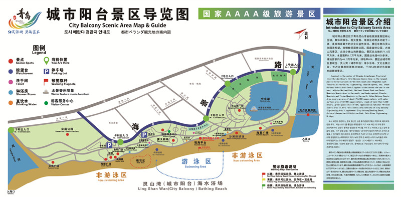 靈山灣(城市陽臺)海水浴場開放時間為7月1日至9月25日(其中7月1日至8月15日每天上午9:00至晚上19:00,8月16日至9月25日為每天上午9:00至晚上18:00)。海水浴場全長1980米,沙灘面積28.5萬平方米,游泳區(1號瞭望塔至2號瞭望塔之間)全長500米。靈山灣(城市陽臺)海水浴場設有2處淋浴房提供熱水沖洗和存儲服務,另外有7處免費露天淋浴臺、2處直飲水機、3處四星級公廁為市民和游客提供免費服務,為大家提供舒適的消暑納涼空間。