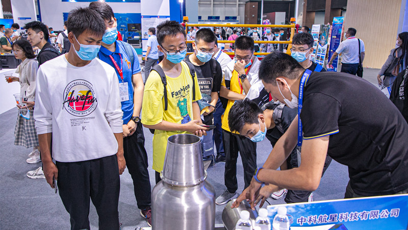 在中挪未來創(chuàng)新科技(青島)有限公司展區(qū),參觀者們正在通過視頻了解船體除銹機(jī)器人的工作過程。“它能自動(dòng)吸附在船體上,把生銹的大船清理的干干凈凈。”一位小朋友告訴記者。