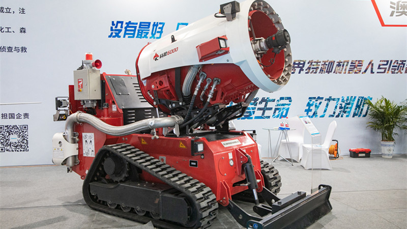 在無人直升機(jī)旁邊,一個(gè)“大塊頭”也被不少人圍觀。“這是第一次亮相展會(huì)的霧炮消防滅火排煙機(jī)器人。”劉發(fā)德告訴記者,該機(jī)器人是一款集滅火、排煙和偵查功能于一體的多功能消防機(jī)器人,其帶有的多種噴水模式,能夠適用于不同情況下的滅火,可以快速移除火中熱量并降低溫度,從而實(shí)現(xiàn)滅火和排煙功效。