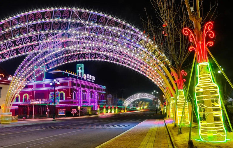 夜幕降臨,金沙灘啤酒城內成了一片“燈海”世界,就地過年的游客紛至沓來,感受不一樣的年味兒。“彩燈時尚靚麗,我們拍了很多照片,發給家人讓他們一起感受這里的新春氛圍。”留在新區過年的外地人唐越說。