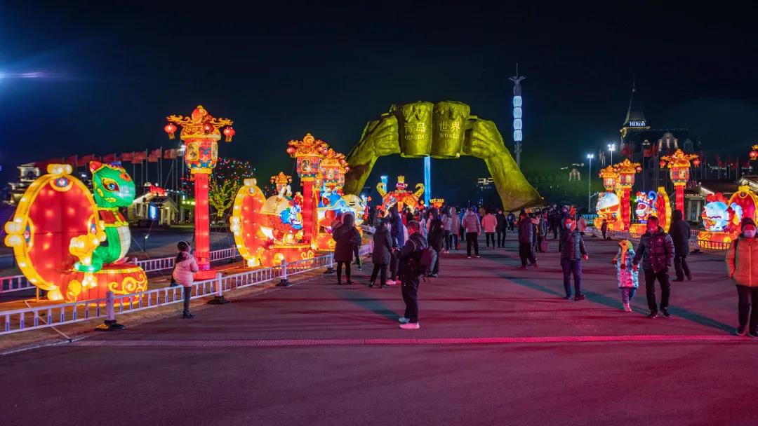 首次打造大型自貢彩燈藝術亮化,推出9個主題50余個造型,營造了喜慶歡樂的節日氛圍。強化景區運行保障,配備專業安保、消防、工程團隊24小時應急值守,重點加強疫情防控、消防安全、現場秩序管理,營造安全有序的游園環境。酒吧街、不是書店、國際啤酒匯超市等經營場館正常營業,為市民和就地過年人員提供休閑游樂的好去處。濃厚的節日氛圍也吸引了中央電視臺《新聞聯播》和《中國新聞》、山東電視臺、青島電視臺及各類媒體的廣泛關注和聚焦報道。