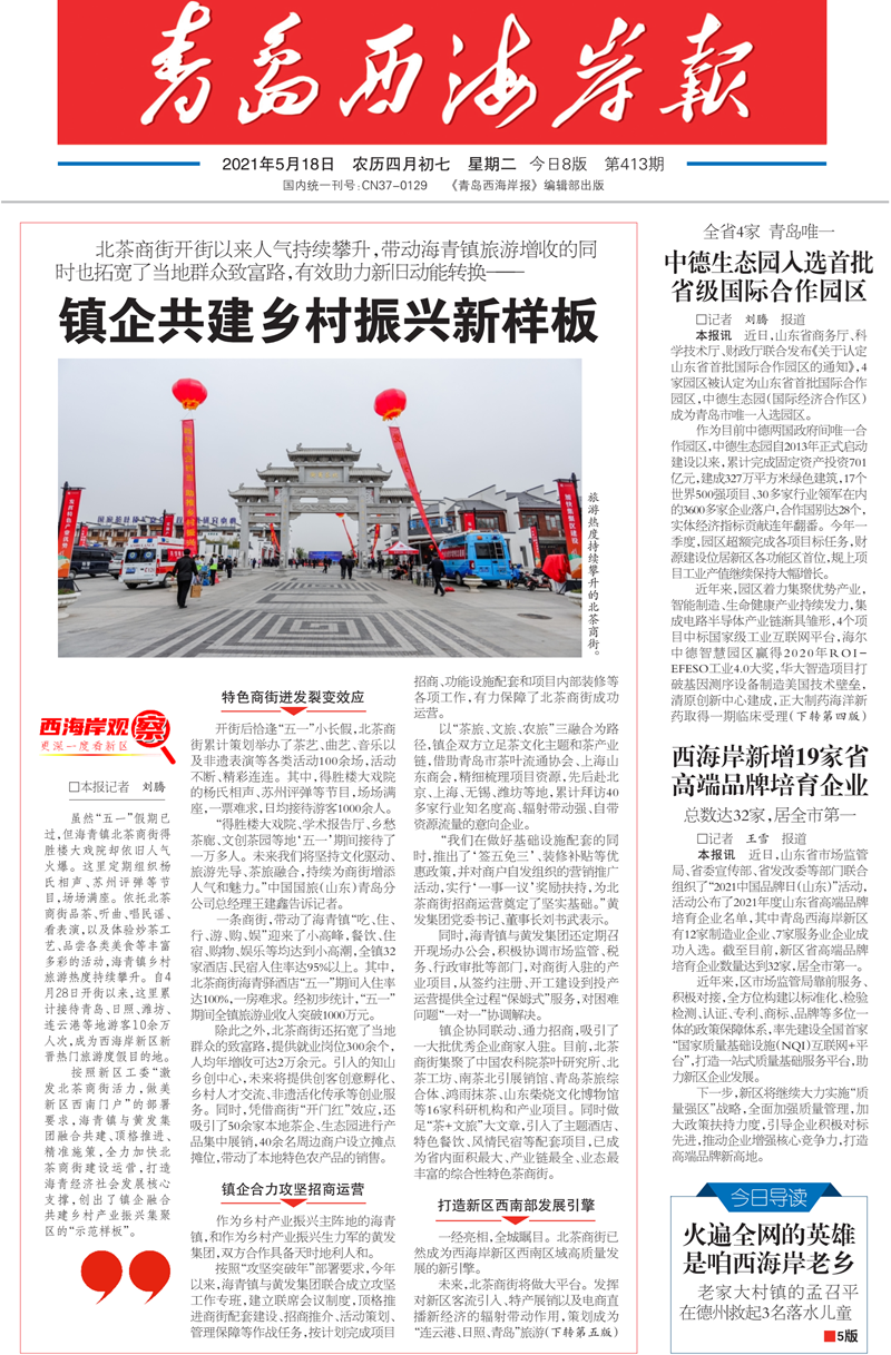《青島西海岸報》5月18日報道: