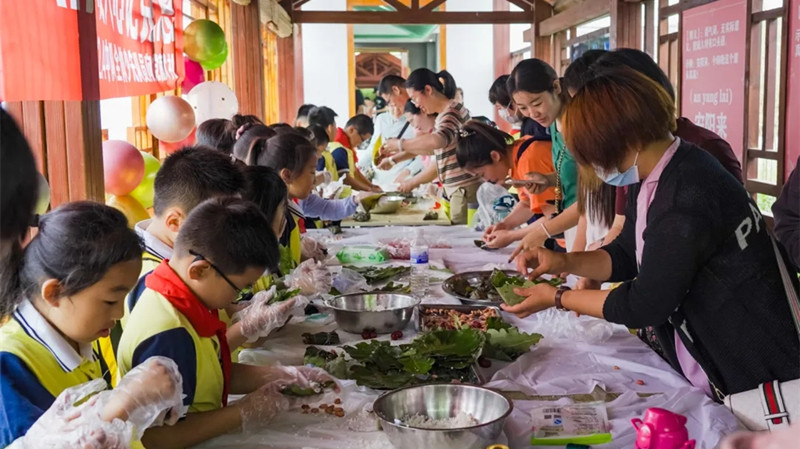 6月9日,“弘揚傳統粽香情 少年兒童頌黨恩”主題活動在北茶商街舉行,來自新區實驗小學的1700余名師生、家長參加活動。海小青市集廣場、鄉愁茶廊、得勝樓大戲院、風雨廊橋四個會場現場同步直播活動盛況。