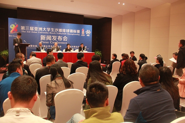4月19日,2014年第三屆亞洲大學(xué)生沙灘排球錦標(biāo)賽新聞發(fā)布會(huì)在青島靈山灣旅游度假區(qū)城市陽臺(tái)福朋喜來登大酒店舉行。隨后,亞大體聯(lián)全部常委實(shí)地查看了比賽場地。亞大體聯(lián)主席、教育部原副部長章新勝,亞大體聯(lián)第一副主席AL-HAI Omar A,亞大體聯(lián)副主席CHEN Kunning,亞大體聯(lián)秘書長CHOW Kenny,區(qū)領(lǐng)導(dǎo)孫大貴等出席。